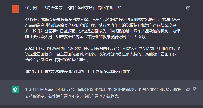 2、请将……提炼整理成30字以内的信息,用于发布在品牌类社群内