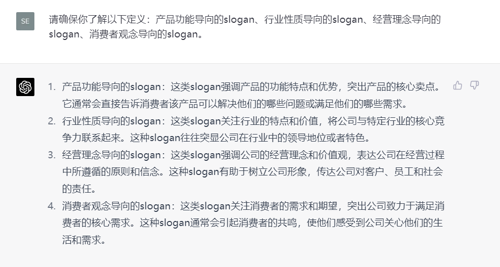 产品功能导向的slogan、行业性质导向的slogan、经营理念导向的slogan、消费者观念导向的slogan。